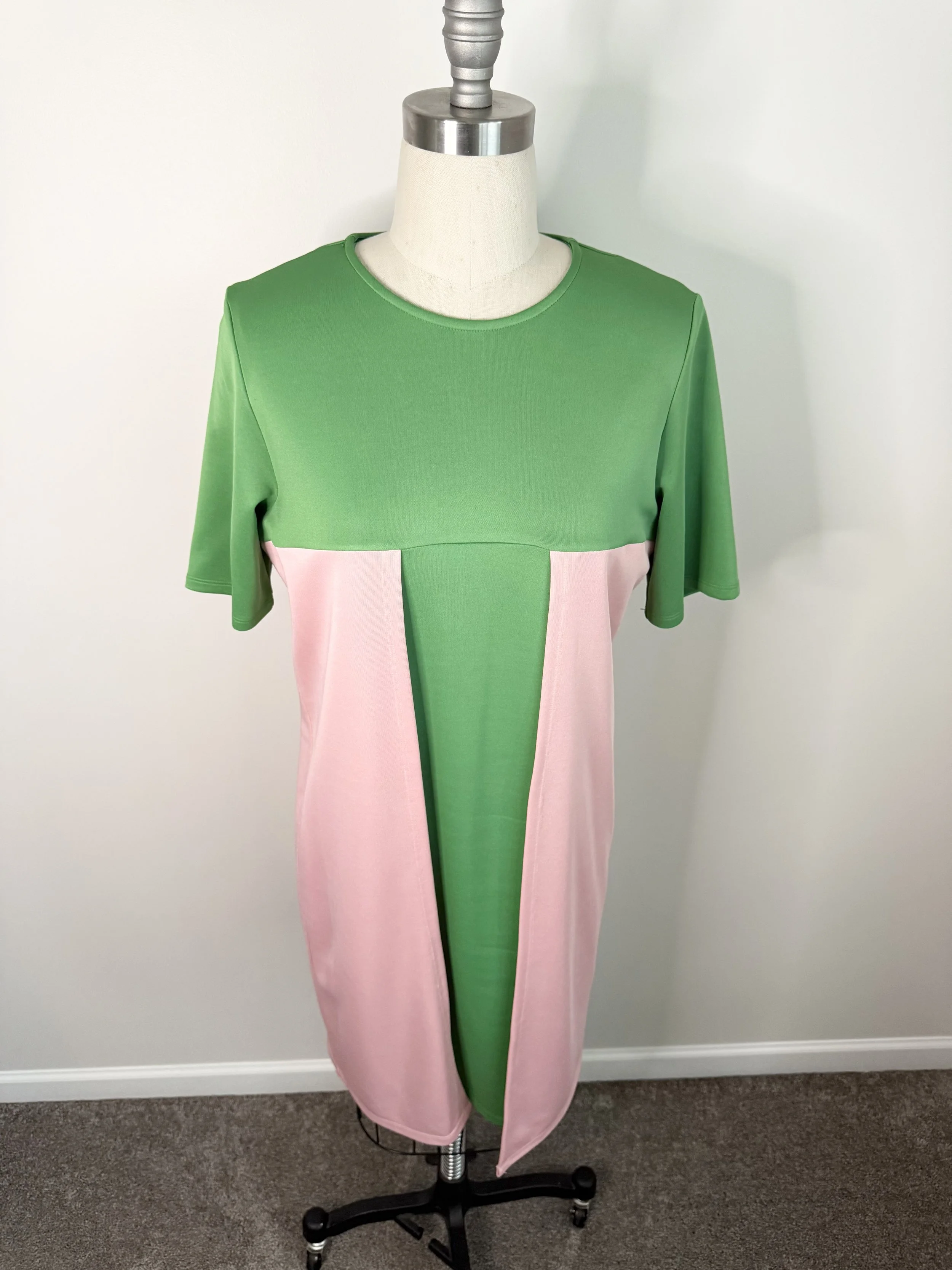 Carrie Pink Bodice with green pleated insert. Fit Notes: runs true to size $175